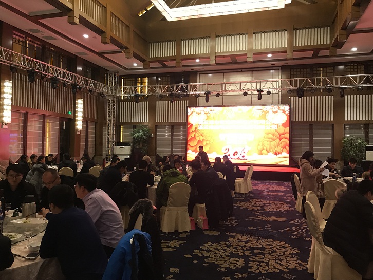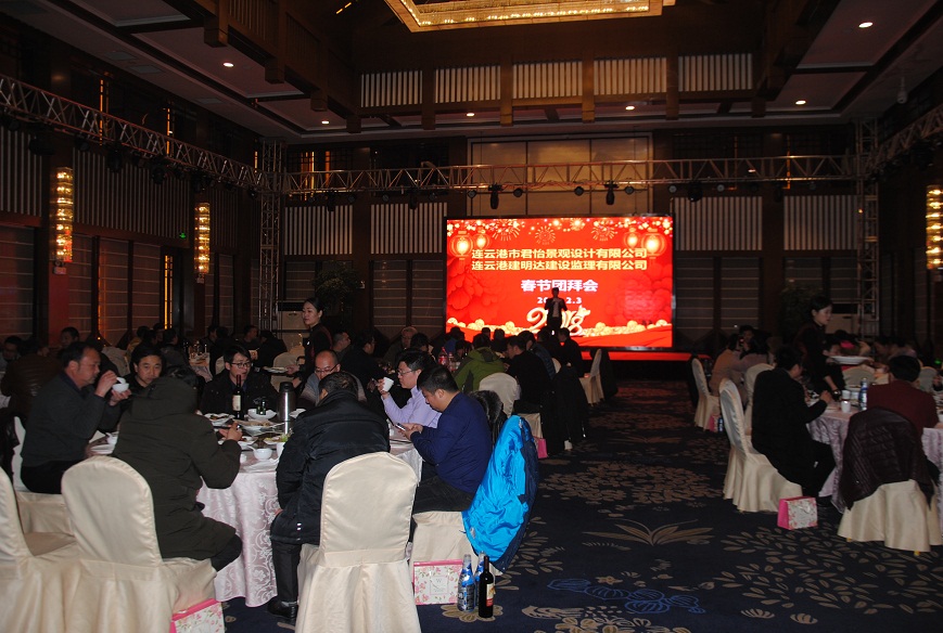 晚七時新春團(tuán)拜晚宴準(zhǔn)時在宴會大廳開始,公司領(lǐng)導(dǎo)與全體員工一同參加了晚宴。員工還自發(fā)排練了一臺春節(jié)聯(lián)歡晚會,有歌曲、有舞蹈、有朗誦,節(jié)目異彩紛呈,為晚宴增加了歡樂的氣氛。