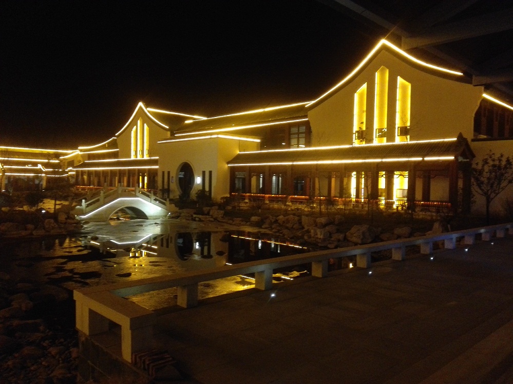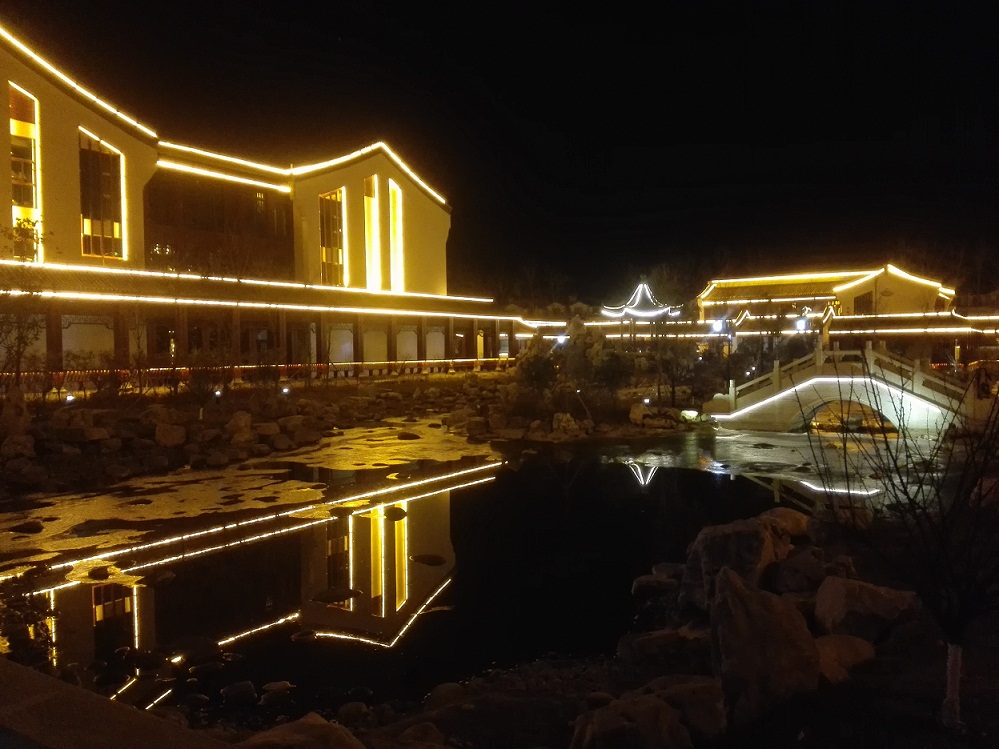 夜晚的東海溫泉大酒店流光溢彩,節(jié)日氛圍濃厚。